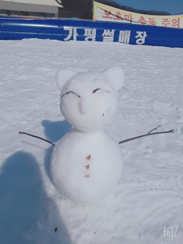 사람도 많지 않아서 눈썰매를 멈추지 않고 타고, 눈사람도 만들었다.