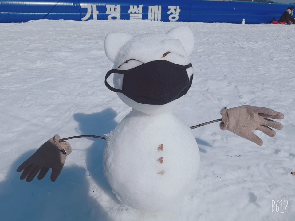 눈사람에게 마스크도 씌어주고 장갑도 껴주고 ㅎㅎㅎ 완전 어릴 때 초등학생 때로 돌아간 느낌이었다 ㅎㅎㅎ